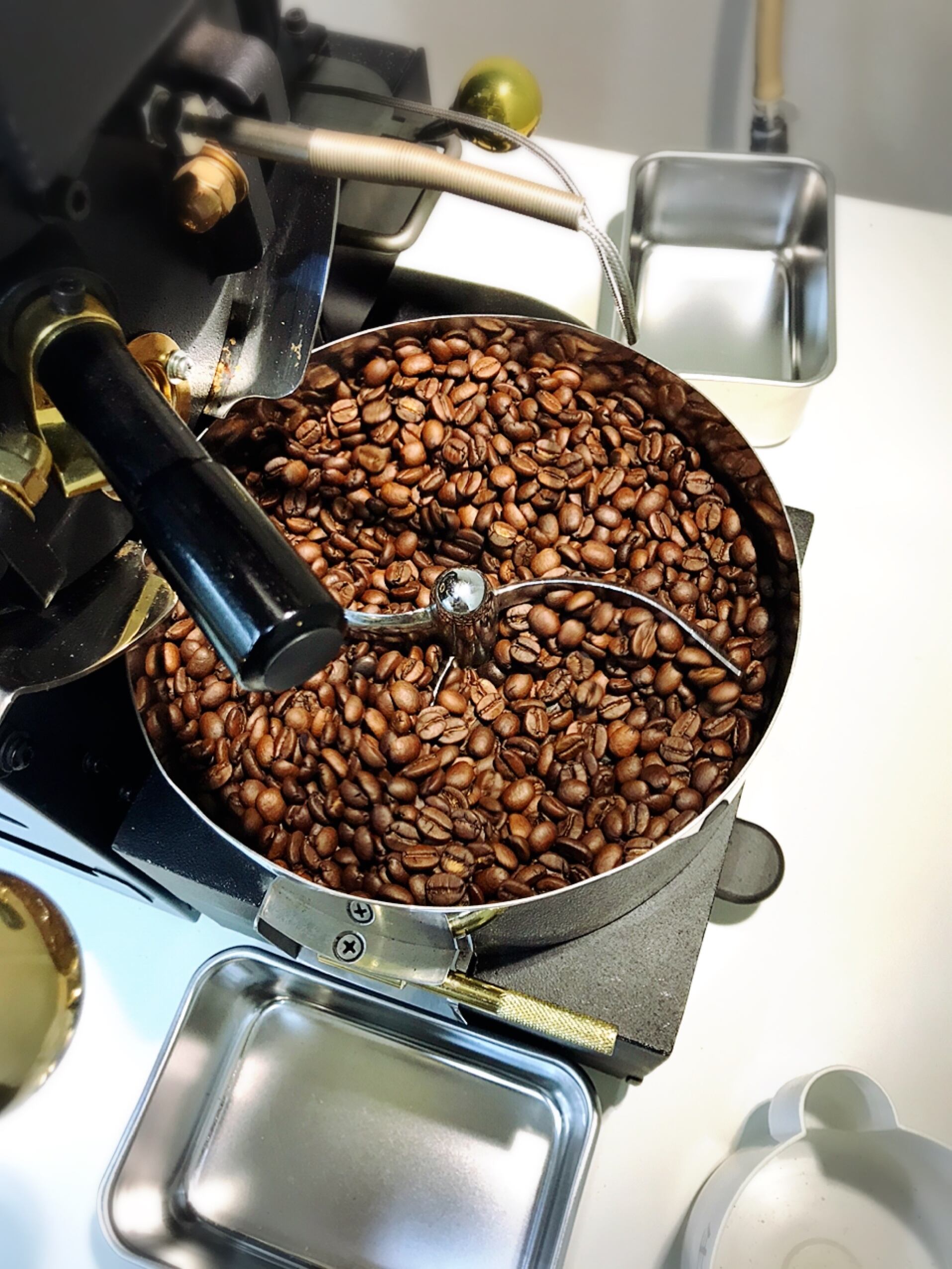 自家焙煎のブレンドコーヒー豆(100g)です。お勧めの分量は1杯分12g、ラパンのカフェでご提供しているコーヒーと同じです☕️